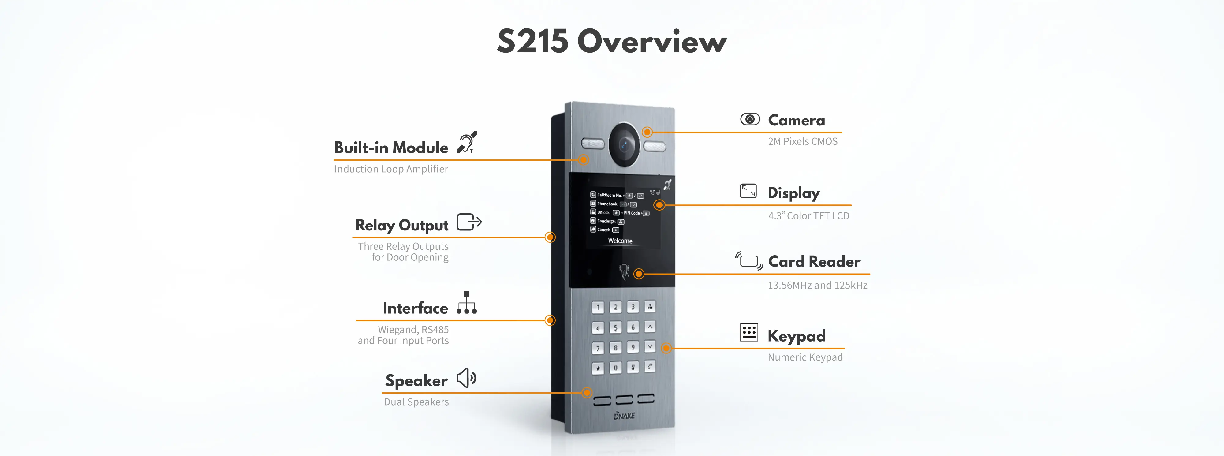 წარმოგიდგენთ S215-ს - ინოვაციურ SIP ვიდეო დომოფონს, რომელიც აერთიანებს მოწინავე ტექნოლოგიას, დახვეწილ დიზაინს და მომხმარებლისთვის მოსახერხებელ მართვას.